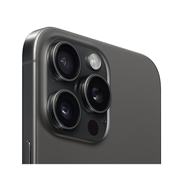 48MP Main camera with 24MP, 48MP HEIF and ProRAW, three zoom options, 12MP Ultra Wide, 12MP Telephoto (5x on iPhone 15 Pro Max, 3x on iPhone 15 Pro), next-generation portraits with Focus and Depth Control, Photonic Engine, Night mode, Smart HDR 5, ProRes up to 4K at up to 60 fps, Cinematic mode in 4K at 60 fps, Action mode, Log and ACES support and Spatial Video recording