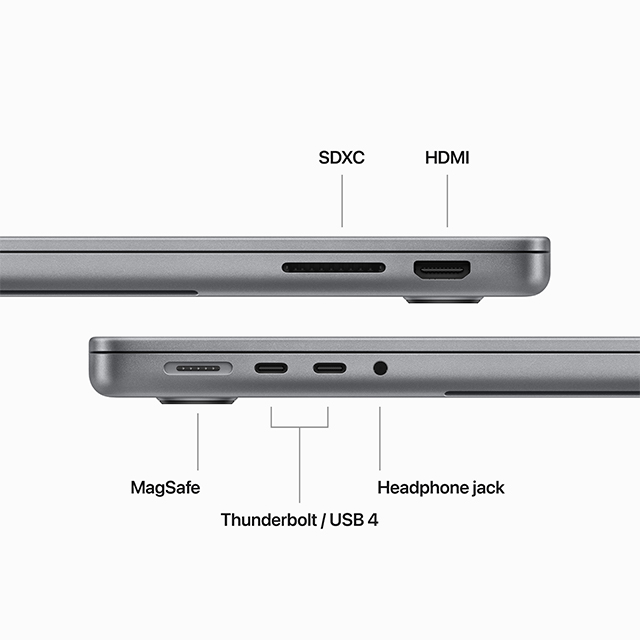 - Features MagSafe 3 ports, HDMI port and SDXC card slot for connecting to displays and camera memory cards
